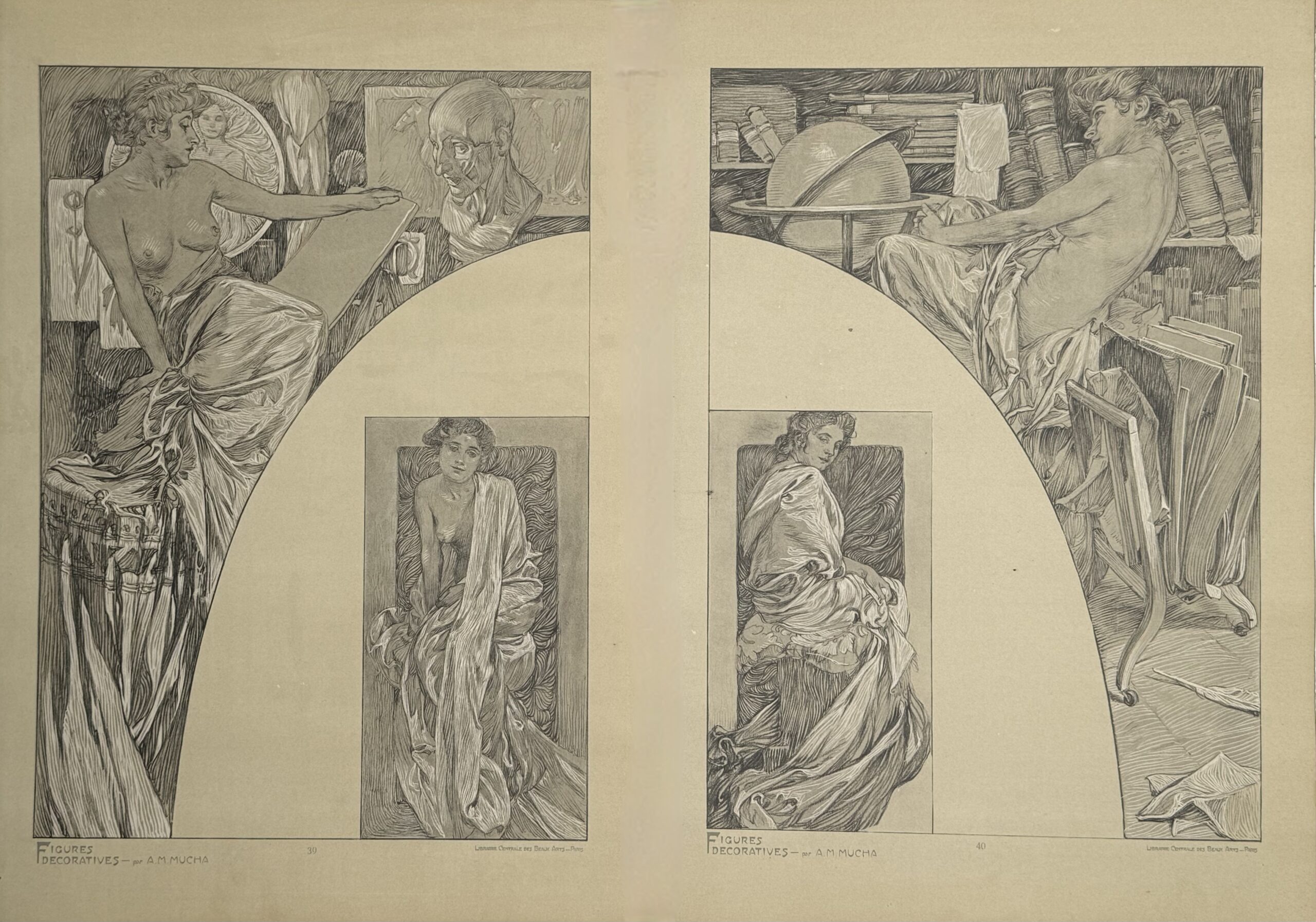 Alphonse Mucha : Figures décoratives, 1902 pl.39 and pl.40