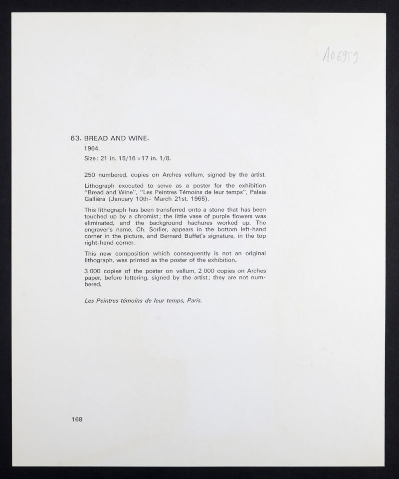 Issued from the portfolio “Bernard Buffet, Lithographs, 1952-1966” by Bernard Buffet and Fernand Mourlot.