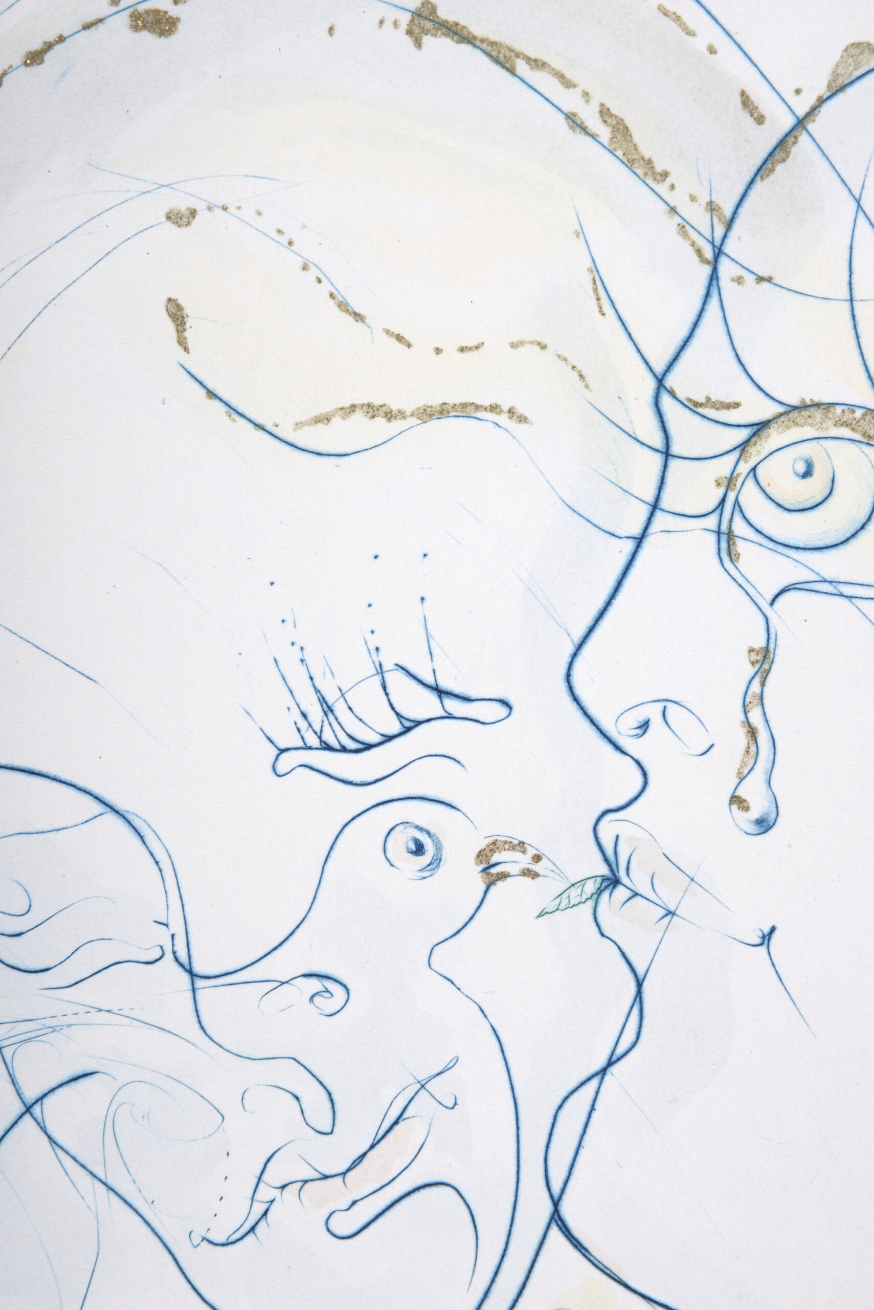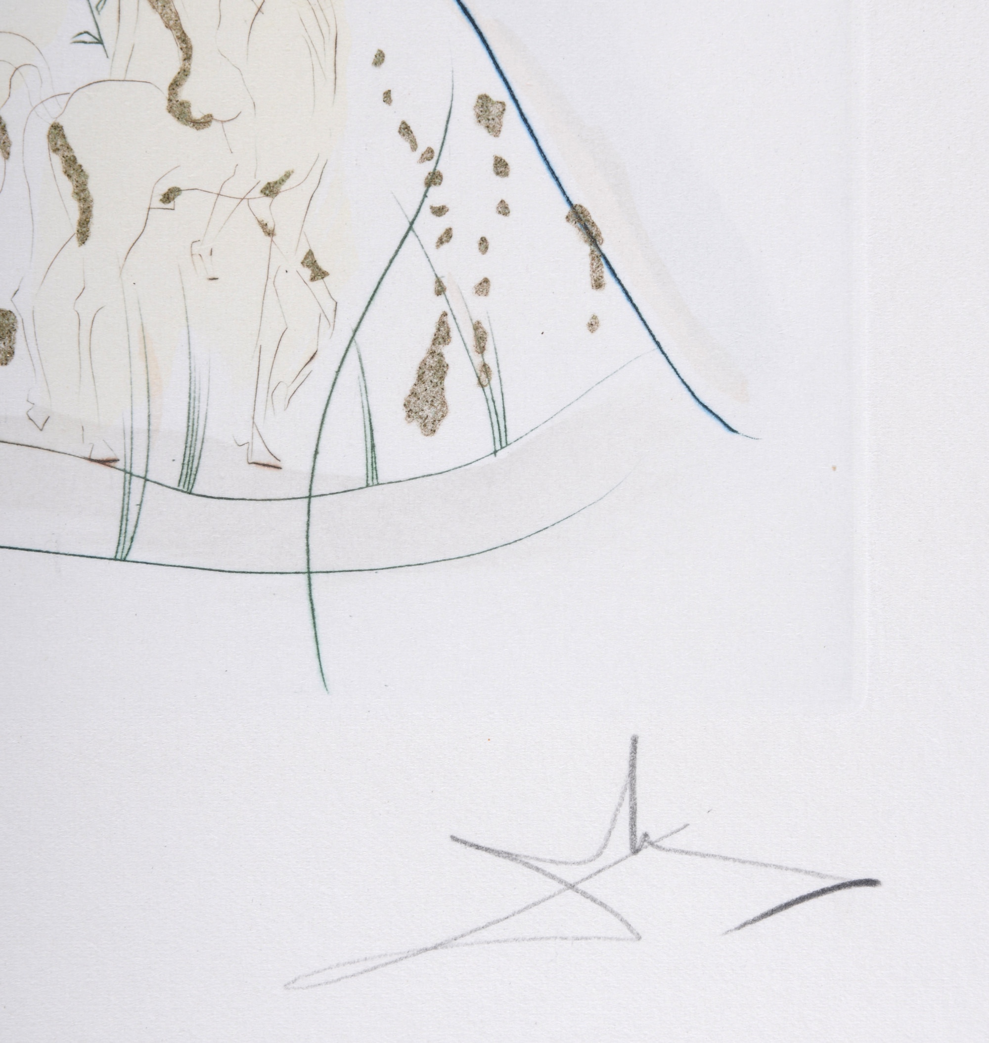 Original etching (drypoint & aquatint) on Arches paper, enhanced with gold ink.