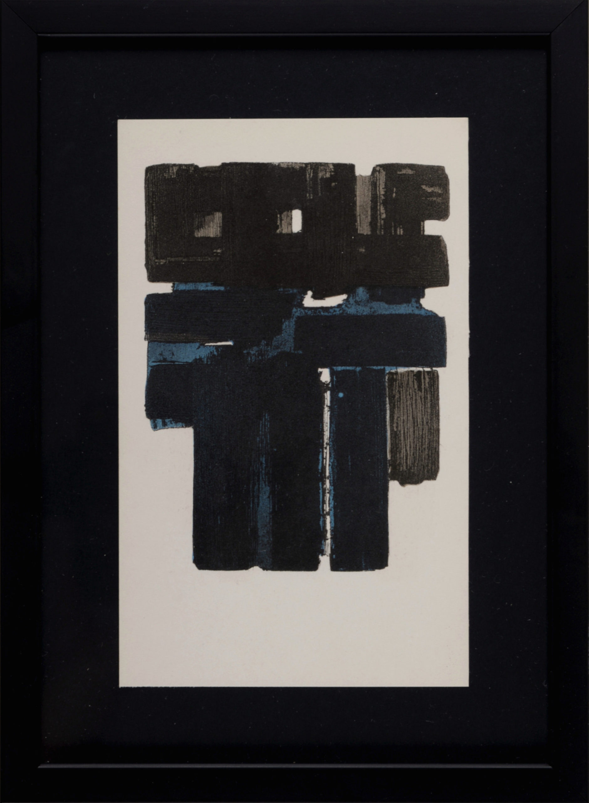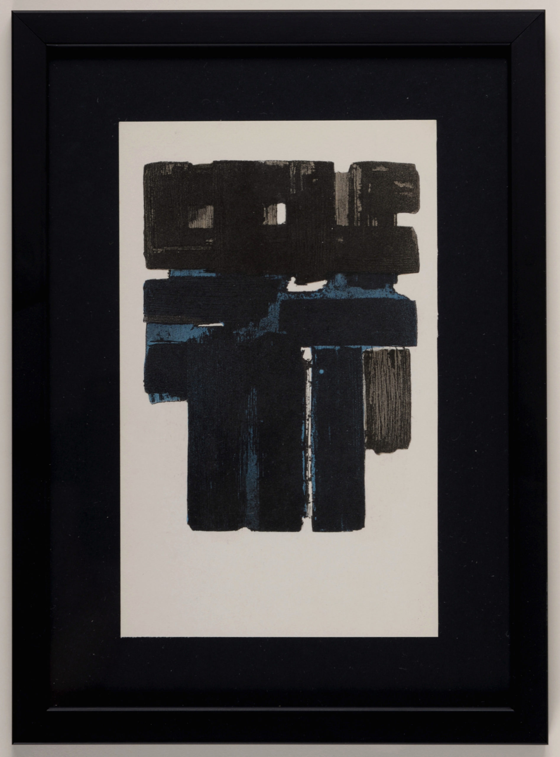 Jacomet process print (Pochoir) on wove paper, after Pierre Soulages’ gouache painting. Framed!
