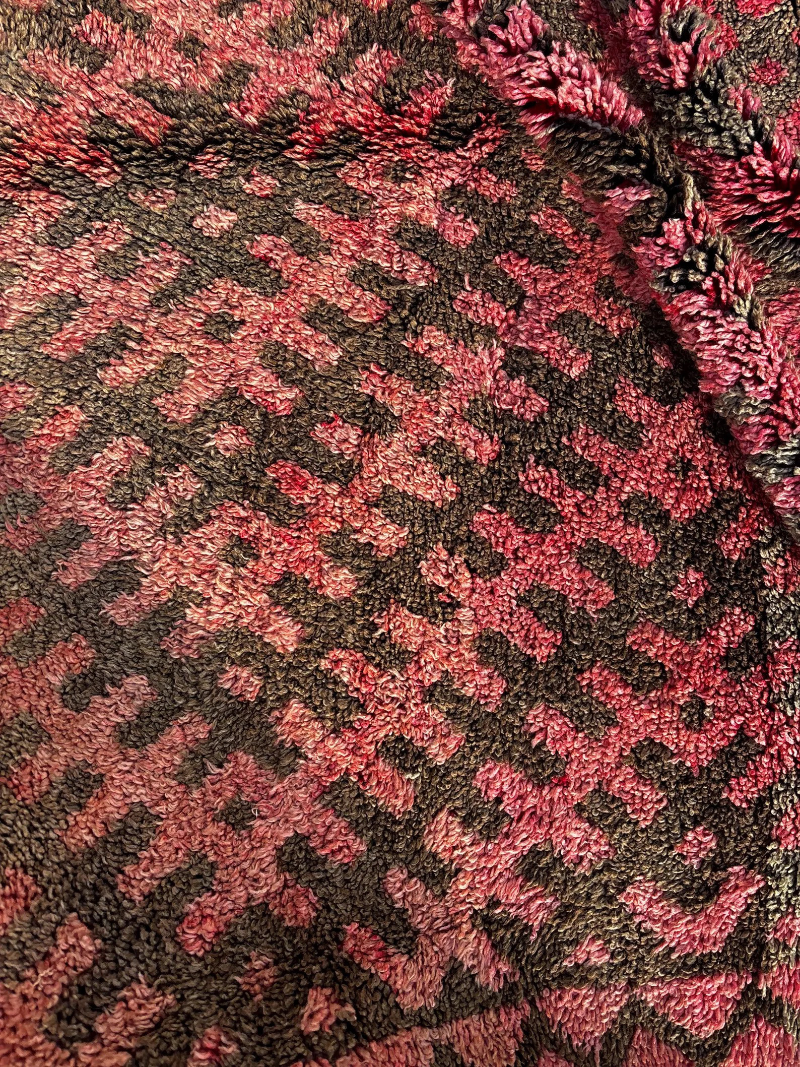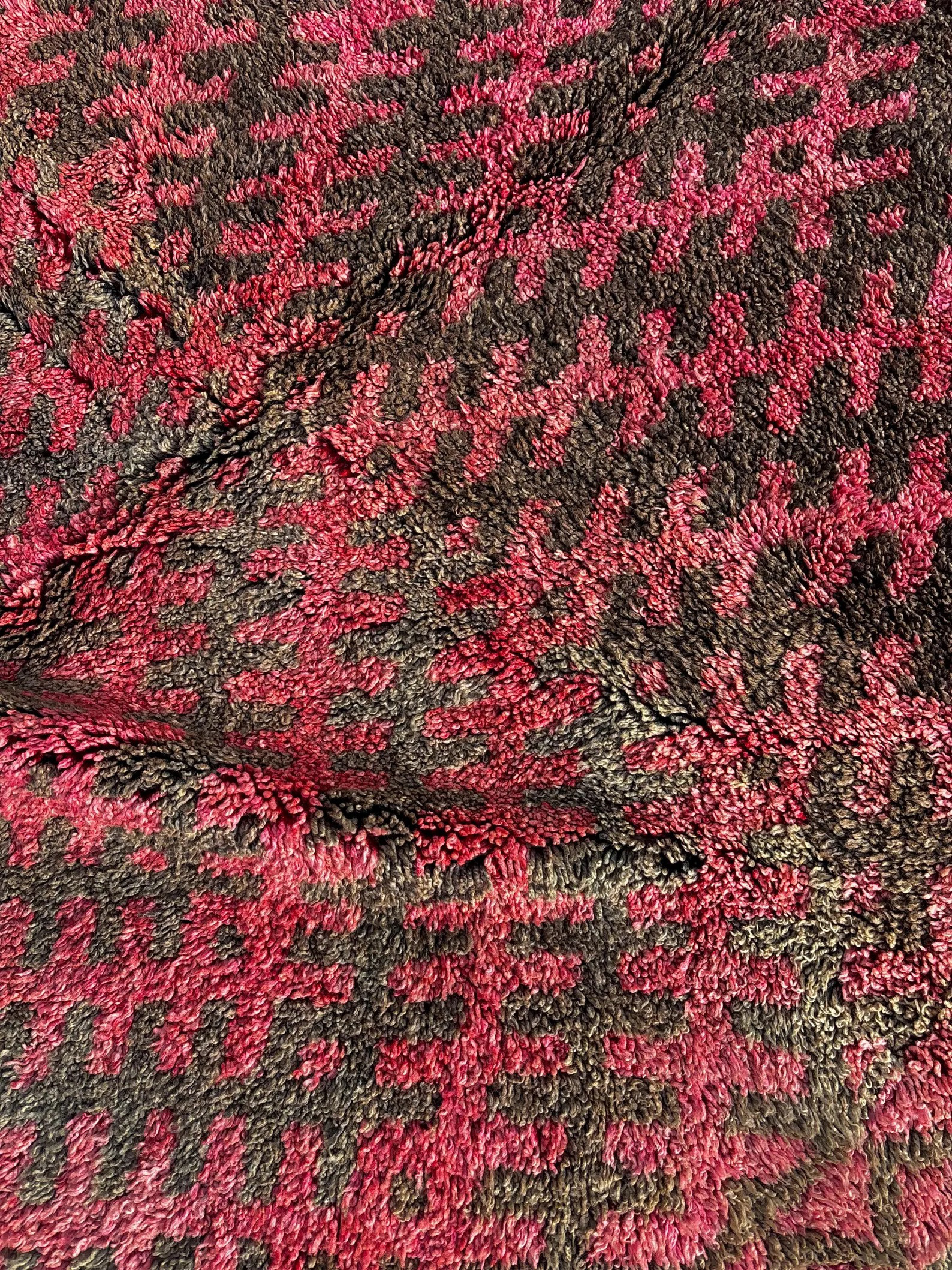 Known for its bold patterns, deep earthy tones, and strong tribal character typical of the Talsint region in southeastern Morocco.