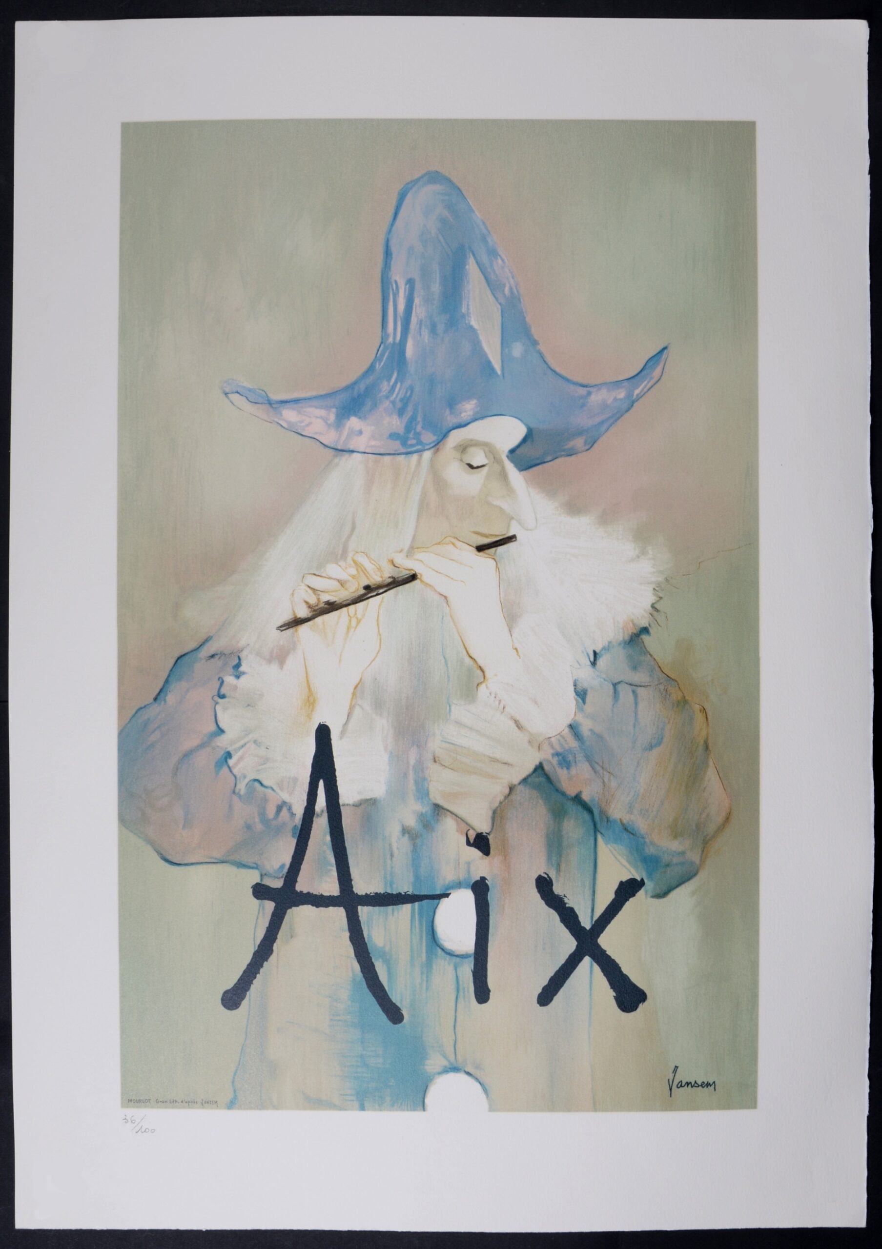 Cette lithographie est une épreuve avant la lettre (avant le texte) d’une affiche créée pour le Festival d’Aix-en-Provence, le festival international de musique qui se tient chaque été à Aix-en-Provence.