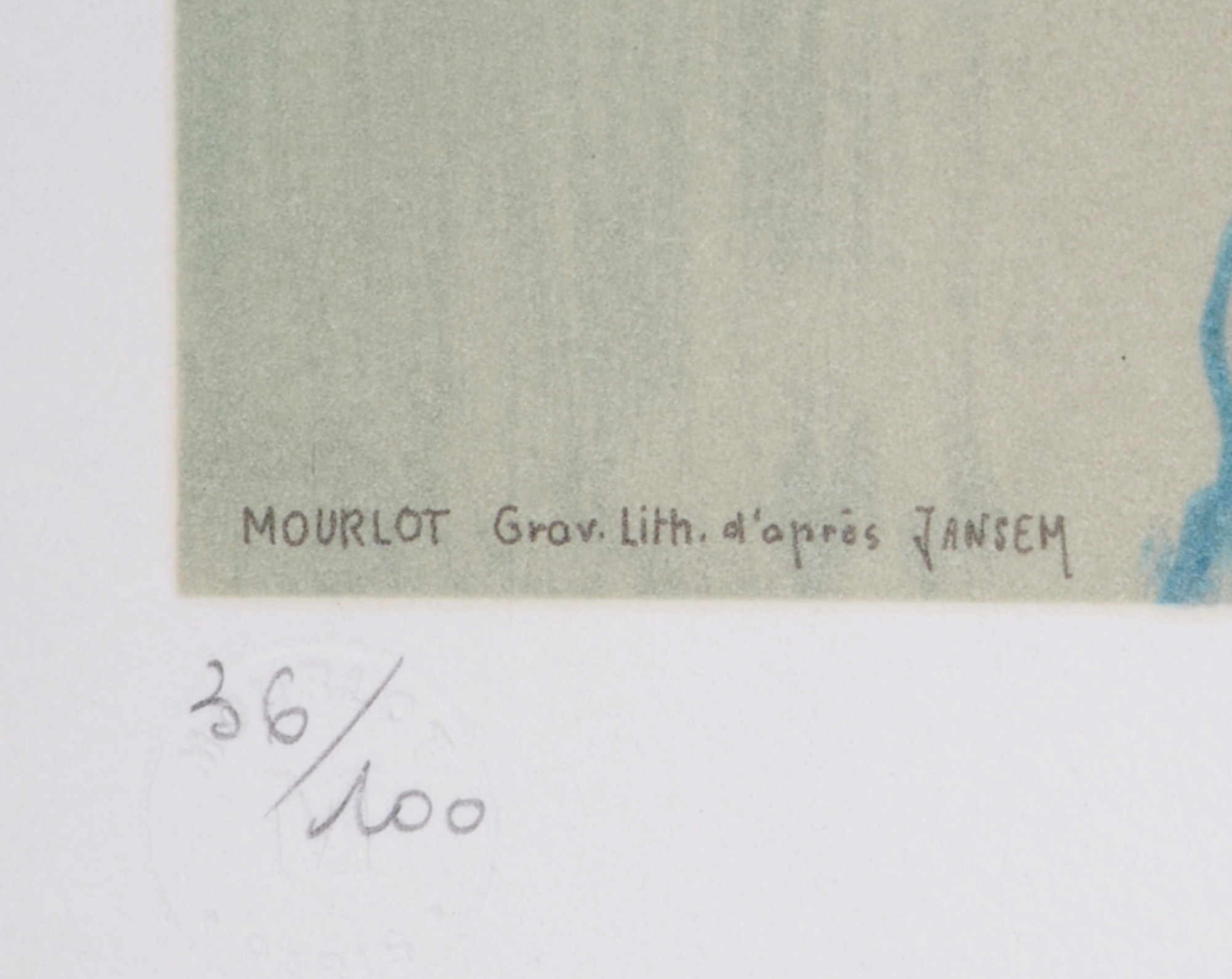Numérotée 36/100 au crayon dans la marge inférieure gauche.