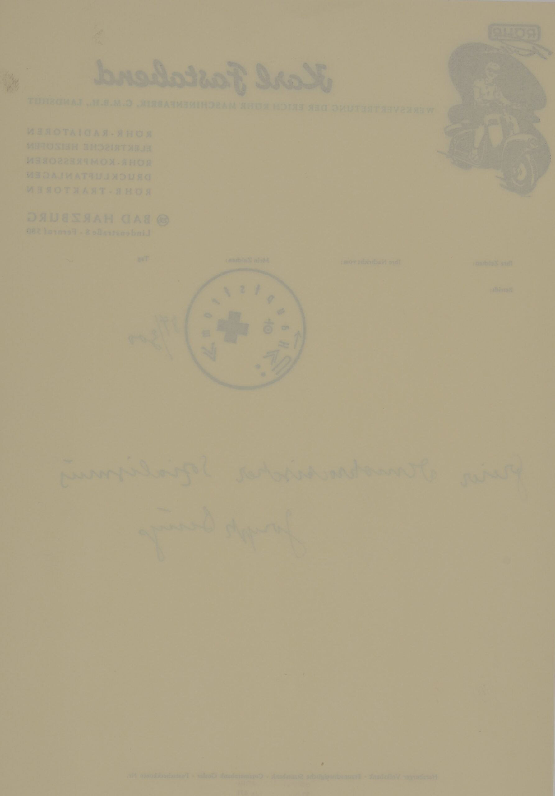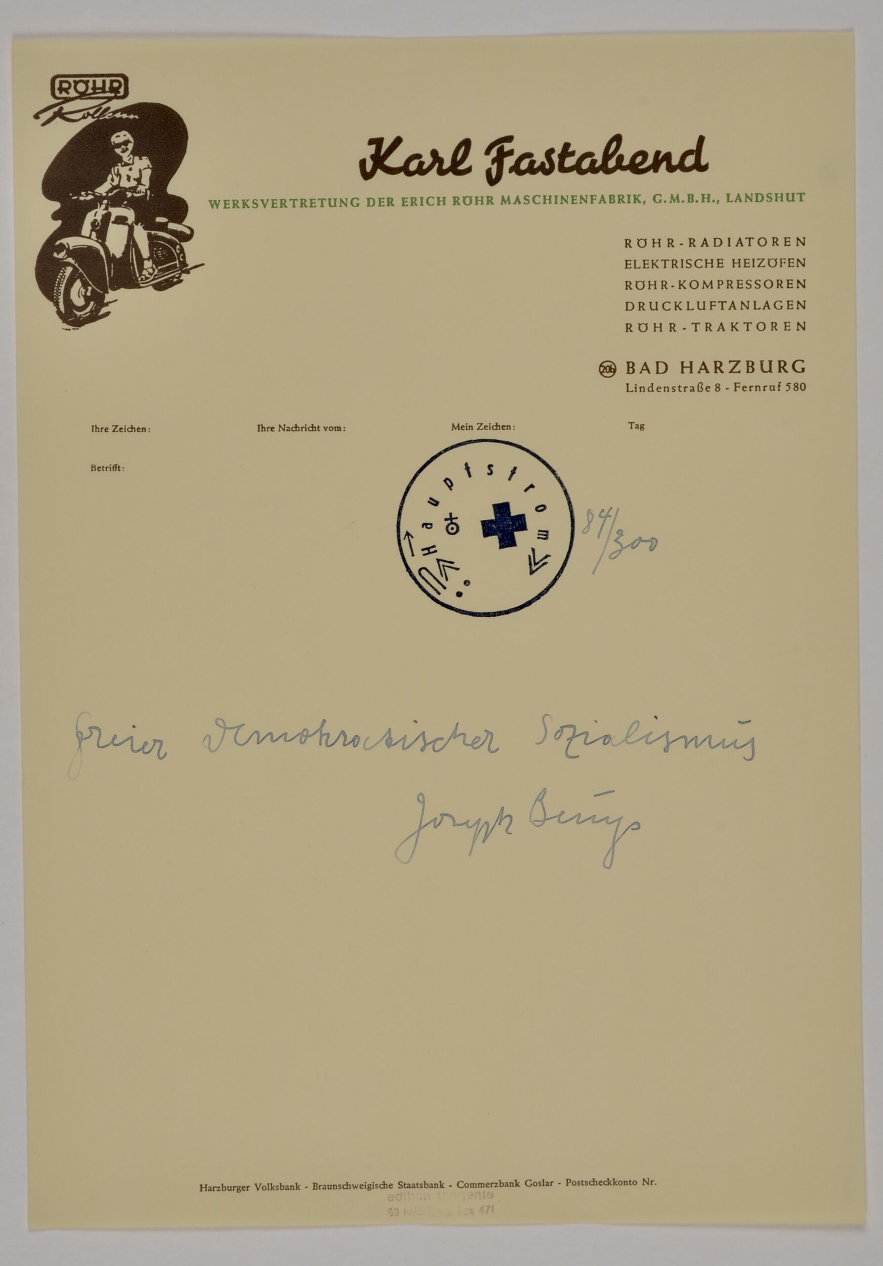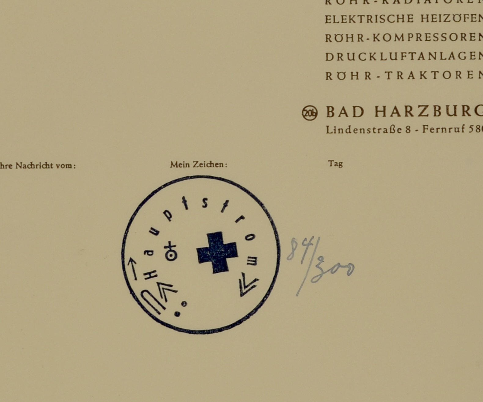 Encre originale et tampon sur papier d’écriture provenant de Karl Fastabend