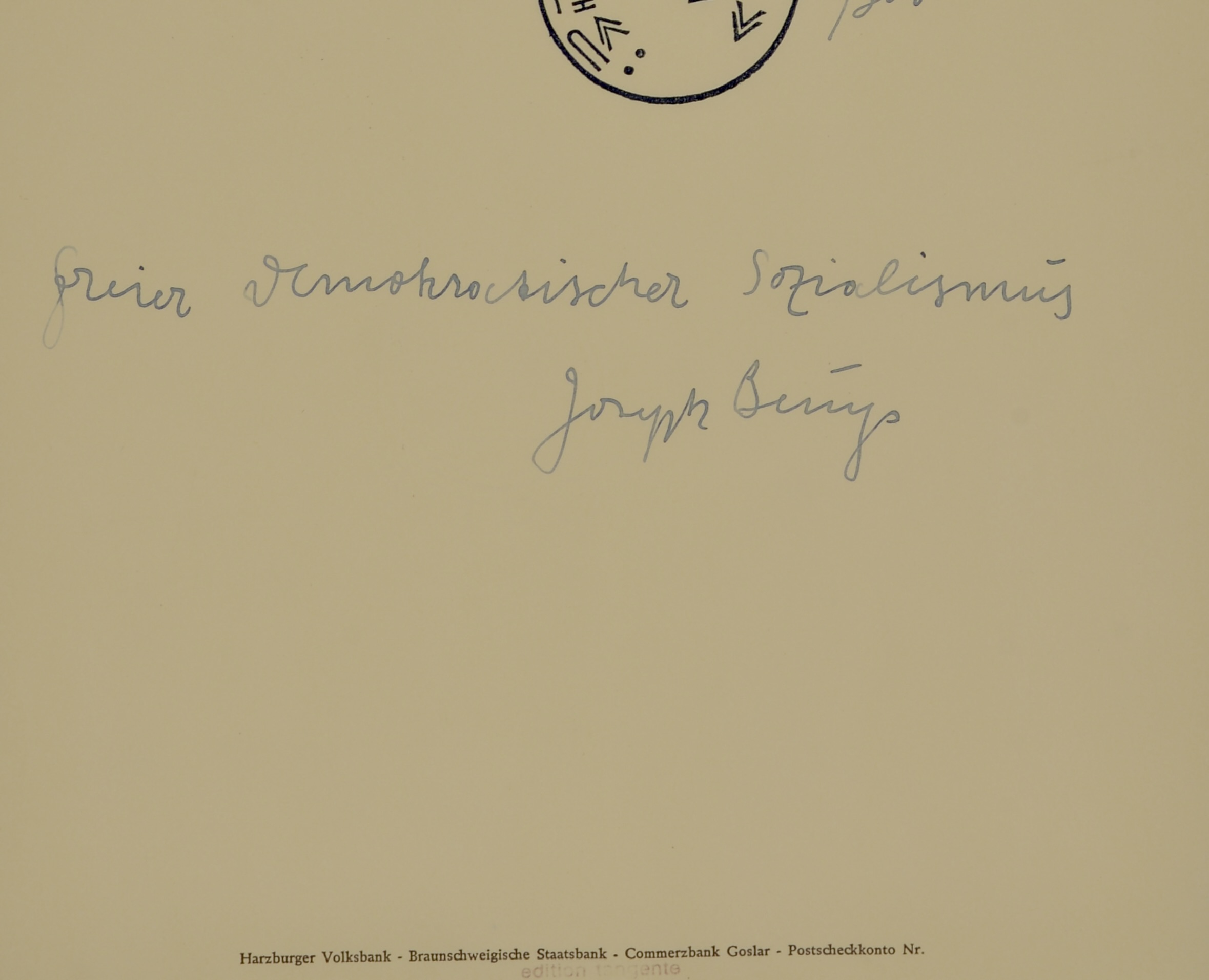 Signé à la main « Joseph Beuys, Freier Demokratischer Sozialismus / Nehmt was ihr kriegen könnt! »