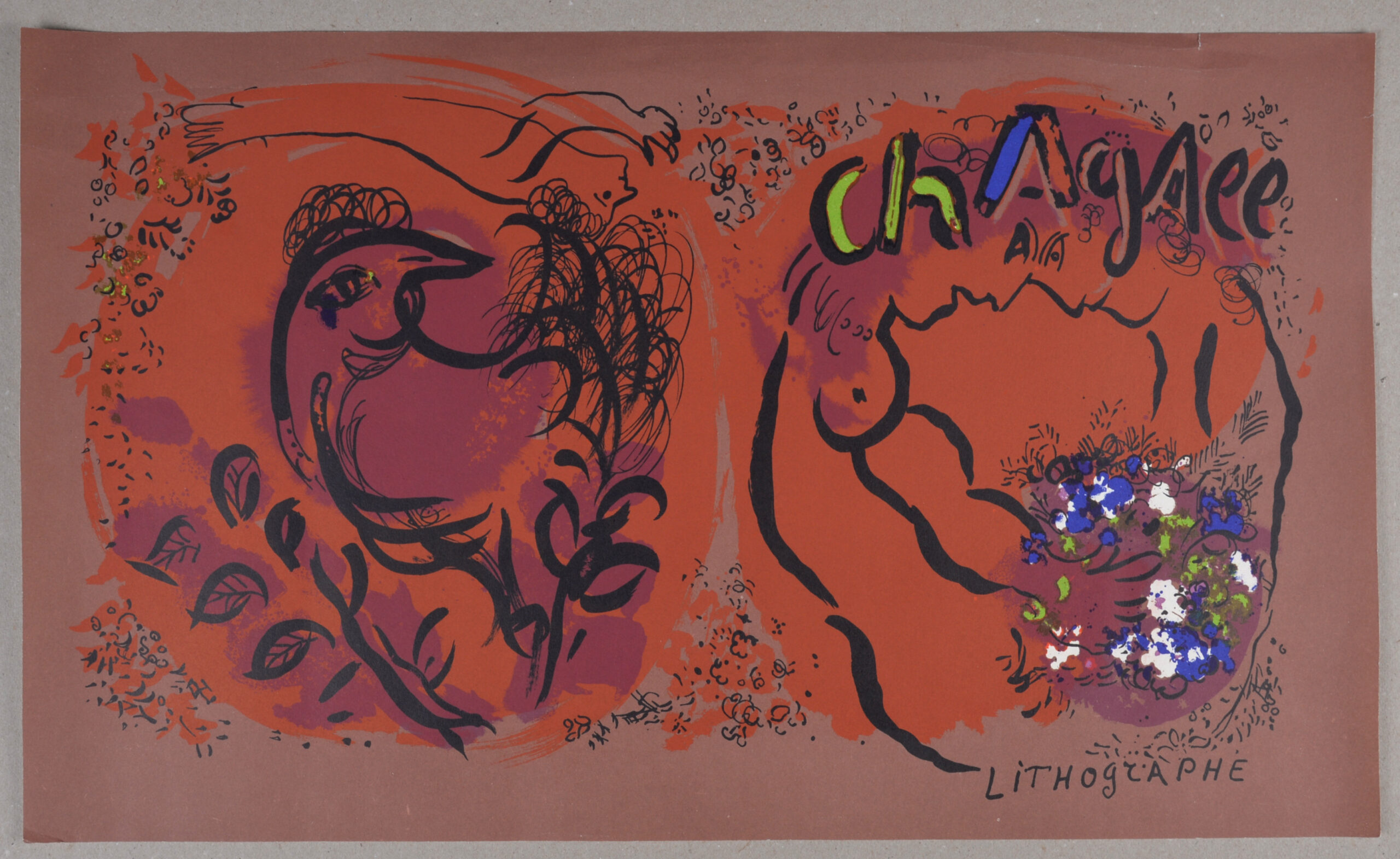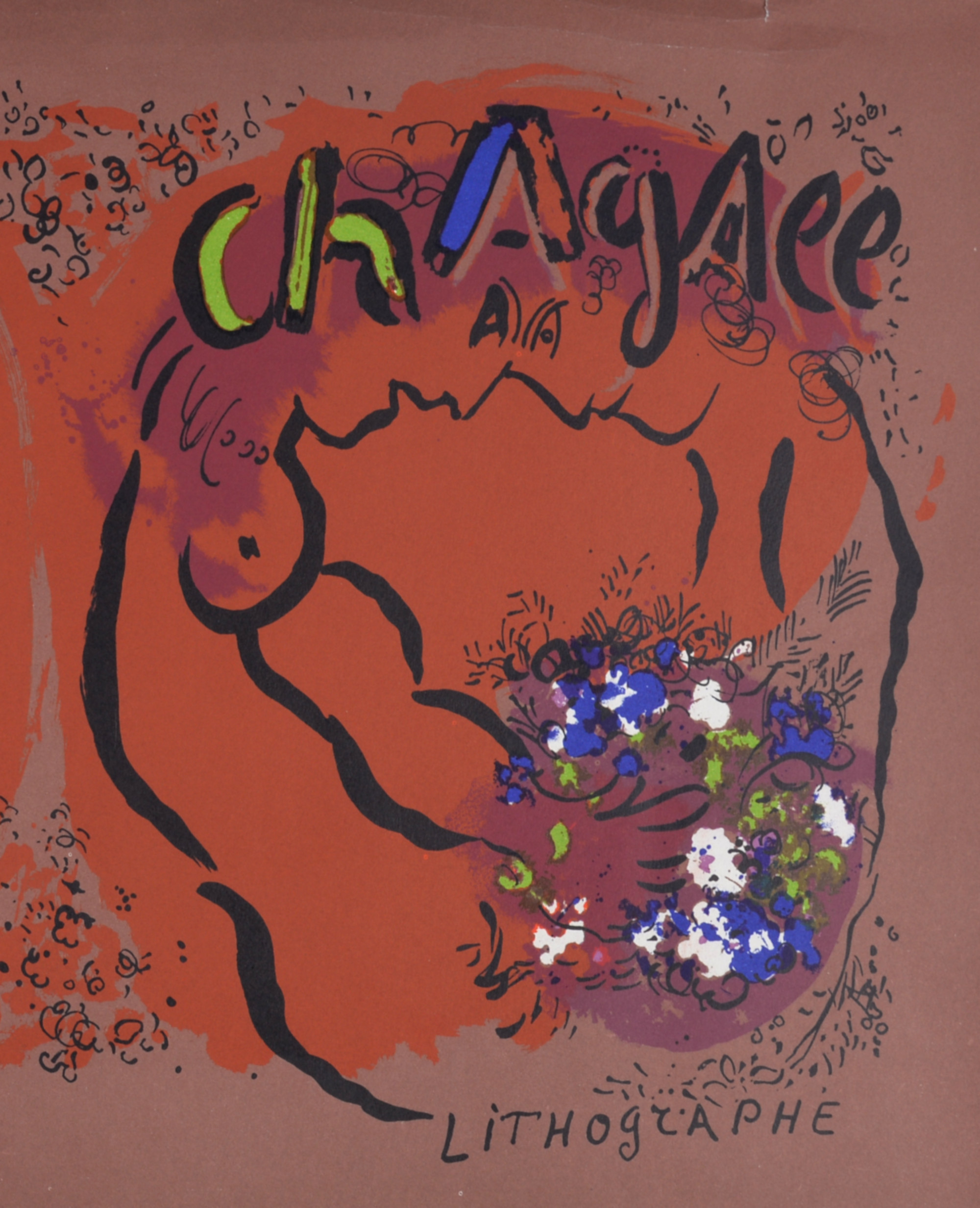 Rare épreuve non pliée, antérieure à l’édition imprimée pour la couverture du portfolio Les Lithographies de Chagall, volume I.