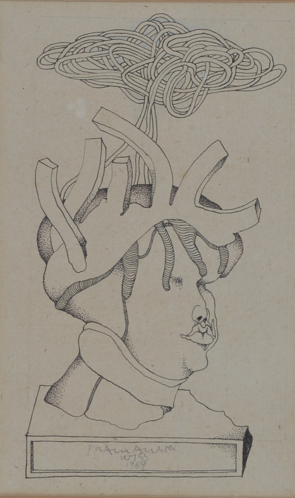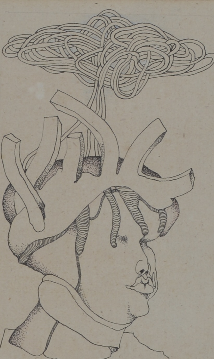 Franz Anatol Wyss : Encre et rehauts de couleur sur papier, 1969